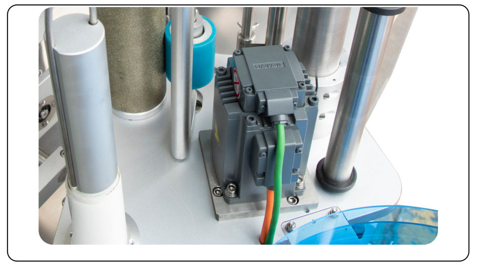 6.2 Etiketleme senkronizasyon mekanizması, şişenin üst kısmını aşağı bastırarak daha kararlı etiketleme sağlar.